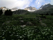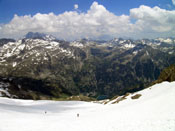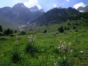 Llcas de Pondiellos amb el Midi d'Ossou (2888m- a l'esquerra) i el Balaitous (3144m- a la dreta).