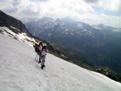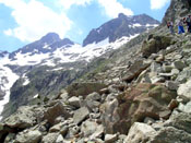 Baixant del coll d'Argualas. A l'esquerra es veu el Vignemale i al fons s'endevina el massís del Mont Perdut.