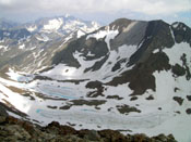 Argualas (3046m), Garmo Negro (3051m) i Arnales-Infierno (3082m) des de la pujada als llacs de Brazato.