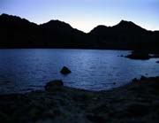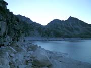 Aixecant-se el dia, amb el refugi Colomina dominant el llac