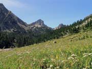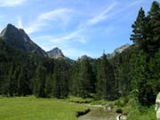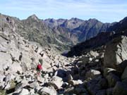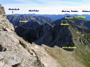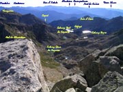 ...i cap a l'est la magnífica vall de Peguera amb els seus estanys, i la Pica d'Estats (3143m) de fons...