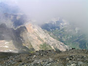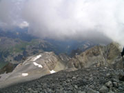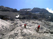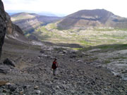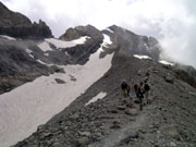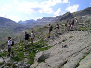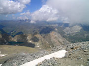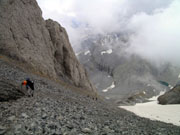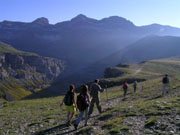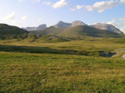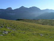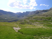 Prats sota la Collada d'Arrablo. Al fons (d'esquerra a dreta) Talló, Casc (3006m), la Torre (3009m), Pics de la Cascada i Marboré (3248m)