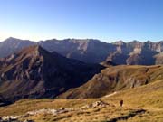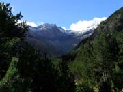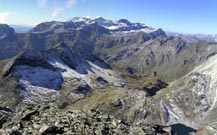 Massís del Mont Perdut: Coll d'Anyisclo (2463m), Pic d'Anyisclo (3254m), Mont Perdut (3355m), Cilindre (3328m), balcó de Pineta al seu davant i Astazu Gran (3071m). Al fons, Vignemale (3298m), amb el Garmo Negro (3052m) i Infiernos (3081m) a la seva esquerra i Gran Fachá (3006m) i Balaitús a la seva dreta