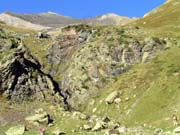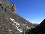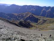 Prop de la cresta del Robiñera. Es veu la dretor de la tartera i el Pla de Pietramula al davall