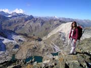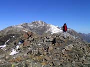 En la cresta, sobre els llacs de la Larri, entre l'avantcim i el cim