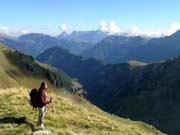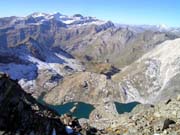 Cap al Sud apareixen els llacs de la Larri i el Massís del Mont Perdut. Davant el Chinipro (2797m) (sobre els llacs de la Larri)