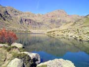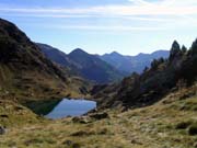 Estany de Tristaina de Baix. Mont del Serrat (2631m) (darrera el llac) i Pics de la Serrera (2911m) i Estanyó (2913m) al fons