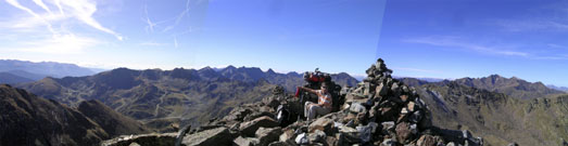 Magnífic panorama des del pic cap a l'est, amb el Pic de la Fontblanca (2903m) a primer terme i els pics de la Serrera i l'Estanyó al fons