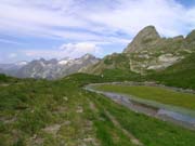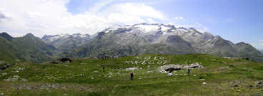 Arribant als plans sota el Portilló de Benasc. Apareix l'imponent Salbaguàrdia (2738m)