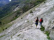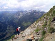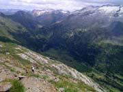 Primeres rampes, amb un fons espectacular: Posets a l'esquerra (3375m), Perdiguero al centre (3222m) i a la dreta el pic del Port Bieil (2842m)
