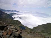 Ja amunt surt tota la Maladeta. Es distingeixen (d'esquerra a dreta) l'Aneto, la Maladeta (3309m) i el Pic d'Alba (3118m), amb la vall de la Renclusa