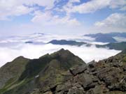 Arribant a la cresta del Salbaguàrdia, amb el no menys imponent pic de la Mina (2708m)