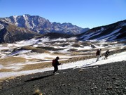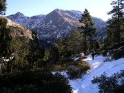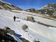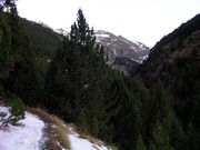Al costa francès del port hi queda la fonda vall de Rioumajou. A l fons, a l'esquerra, s'hi intodueix la cresta de Pineta, i al centre (al fons) apareixen el Robinyera (3003m)i la Múnia (3144m) |