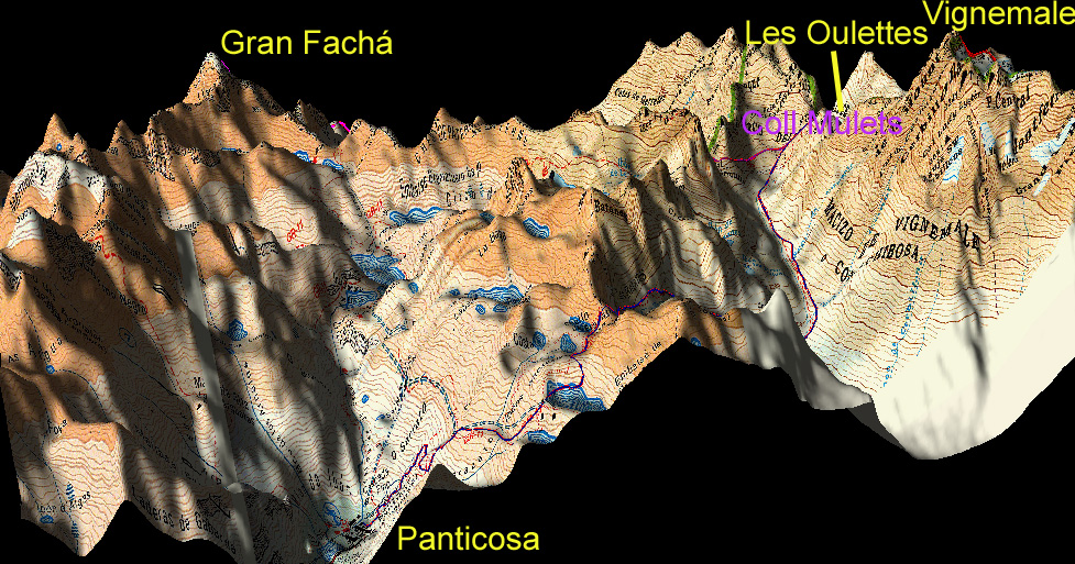 Això sí: l'espectacle torna a ser impressionant. Es passa sota les parets del pic de Cerbillona (3275m) (contrafort oest del Vignemale) i es visiten les valls lacustres de Batanes i Brazato, magnífiques cubetes glacials a la zona est i sur de Panticosa.
