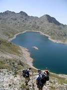 Primer llac de Batans. Ja esveu el coll Superior de Brazato (2578m) |