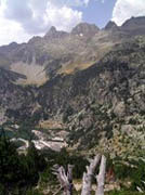 Panticosa i el seu cercle: Argualas (3046m) (Algas(3021m) al seu darrera), Garmo Negro (3051m) i els pics dels Inferns (3081m) |