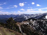 Darrera les pistes d'Arinsal surt el Comapedrosa (2942m) i el Pic del Pla de l'Estany (2912m)