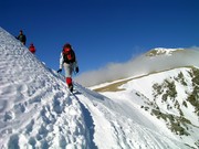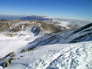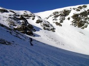 Sortida del coll de la Marrana. Amb neu, ...sempre delicat! Al fons, el Bastiments