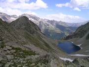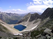 Ibón de montidiego, des de la collada de Montidiego (2728m). Al fons apareix la Maladeta.