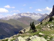 Prats sobre el refugi d'Estós, amb el coll de Biadós que s'endevina al fons
