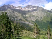 Ja surt la vall d'Estós, coronada amb els pics Xel de la Baca (3110m) i Perdiguero