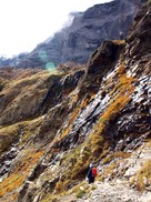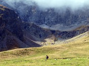 Surt la muralla de Barroude per sobre la terrassa, amb el pic Gerbats (2904m)
