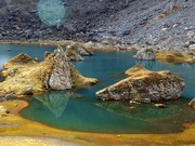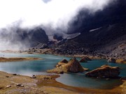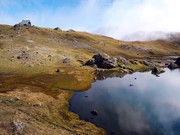 Tornant, sobre la terrassa on hi ha els llacs, plena de roques i pedres caigudes de la muralla