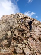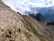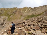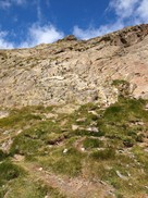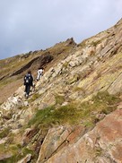 Enmig les lloses hi ha l'excletxa per on es puja cap al coll
