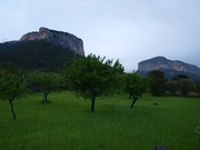 Cap al nord-est el Puig d'Alcadena, amb el Massanella a l'esquerra i Inca al fons