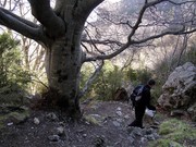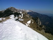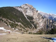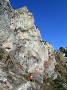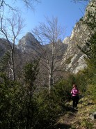 Sortint de la Canal de la Serp, a sota la Roca Gran