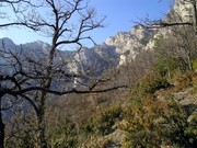 Bosc en el costat de les Penyes Altes , amb el Comabona de fons
