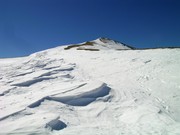 Arribant a la Portella d'Ogassa, amb el Puigsacalm al fons