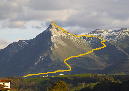 L'ascensió El punt de sortida és des de l'Ermita de Larraiz (accessible des de diferents punts entre Beasain i Alegia, en la carretera de Donostia a Vitoria). Es surt de 400m i s'arriba a 1346m. El camí està molt marcat, com és normal en una muntanya emblemàtica. És una excursió sense dificultat, amb certa inclinació en el con terminal. Tot i això s'ha de tenir en compta els 950 de desnivell. Cal recordar, però, que si es tria per pujar un dia després de 15 dies de pluja, i en el que al davant han passat els ramats (de vaques i ovelles), tot sumat a lo argilós del terreny, més que un camí es troba un bon pasturatge...