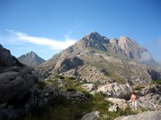 Sortint just en el Nu de sa Corbata, i amb el Puig Major de fons, passem per una valleta que es forma entre agulles i Castellot petit