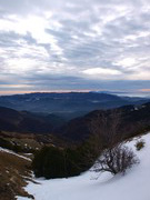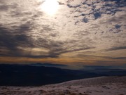 Ressol des del cim. Es veu el Montseny al fons i la plana de Vic mig emboirada