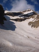 Passant sota la cresta Bazillac, amb el Casc de fons i la Gruta Casteret