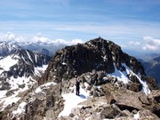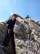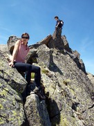 Sobre el llom, amb la fita indicadora de la canal per on ens hem enfilat. Cal recordar el punt si es baixa per aquí