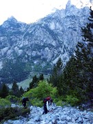 Ja a la canal final, just després de desgrimpar el pas de la canal. Encara falta baixar!