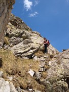 Grimpant el pas del Comalesbienes. Es veu l'exposició del pas