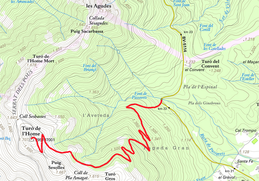 Se surt de la corba de la Font de Passavets (Km 22 de la carretera de Santa Fe del Montseny