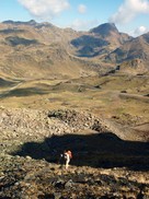 Baixant per la cresta, amb els Estanys de l'Angonella al fons