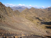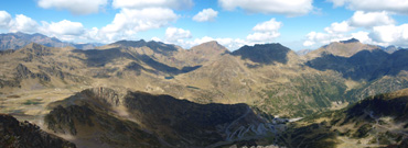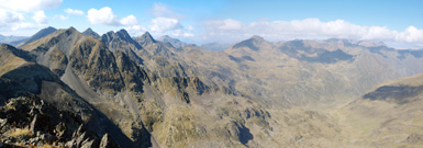 La vista des de la punta sud sobre Arcalís és impressionant. Al fons es veu (d'esquerra a dreta) Pica d'Estats, Pic de l'Estany Forcat, Tristaina i Pic de la Fontblanca
