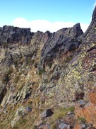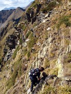 La cresta té algun punt delicat, com aquest, que té instal·lada una corda, ...mig trencada! Cal vigilar. La caiguda avall és forta!