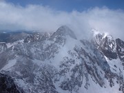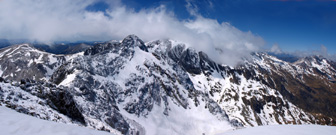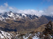 Des del pic es té una impressionant vista de l'Angonella i el Pic del Pla de l'Estany. Al fons el Comapedrosa. Tapats per la boira Medacorba i Lavans