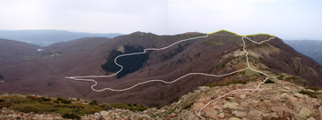 Des de les Agudes es veu el camí fet i per fer. Al fons a l'esquerra es veu el pantà de Santa Fe del Montseny