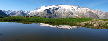 Pla d'Aigualluts, Aneto i Maladeta. Es veu el refugi de la Renclusa (just als peus de la Maladeta)