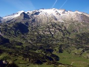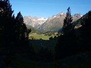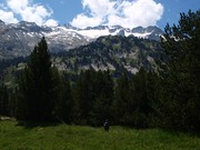 Plan de l'Hospital i vall de Remunyé, amb el Perdiguero i el pic del Port Bieilh. Al fons, a l'esquerra, el Posets