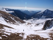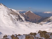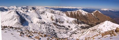 Cap el nord hi ha la vall de Carançà, amb els magnífics pic Rodó i Puig de Gallinàs (sense neu). De fons s'endevinen (una mica destacades, per la llunyania) la Pica d'Estats, el Carlit i els Peric