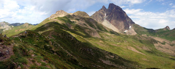 Des del Soum de Pombie es veuen Lourien, Arriel, Palas i Balaitous al fons
