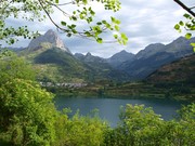 Penya Foratata, sobre el pantà de Lanuza a Sallent de Gállego. Al fons el pic d'Arriel